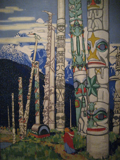 Ahir, tornant de Victoria, vam anar a l'Art Gallery de Vancouver a veure una exposició de l'Emily Carr. Al youth hostel ens van dir que durant tot el dia era gratis però quan vam arribar allà ens van dir que s'havia de fer un donatiu i que ens recomanaven 5$. Donatiu recomanat?? Com bones catalanes vam fer un donatiu d'1$ per cap i ens van mirar fatal. Després vam fer un parell de fotos i ens van venir a demanar que esborrèssim la foto perquè estava prohibit fer-ne :O No ho posava enlloc!! Aqui teniu la que vam conservar , jeje ;)