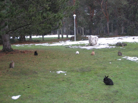 El dia ha estat molt intens, reunions de 8:00 a 17:00. La veritat és que la UVIC és una universitat ben curiosa, és la més diferent de les que hem visitat. Ja us parlarem de feina un altre dia, avui no tenim forces :-) Però us adelantem que ens han portat a dinar a un club universitari per faculty (http://club.uvic.ca/pages/about.html) i que el campus està plagat de conills, tenen una invasió estil Austràlia. Els molt llestos venen a demanar menjar, no tenen cap por. Amplieu la primera foto i veureu!